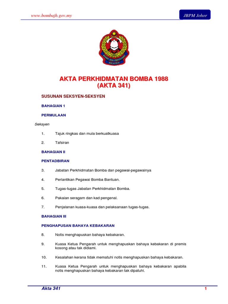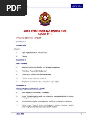 Akta Perkhidmatan Bomba 1988 Akta 341 Mempunyai Berapa Bahagian Dan Seksyen
