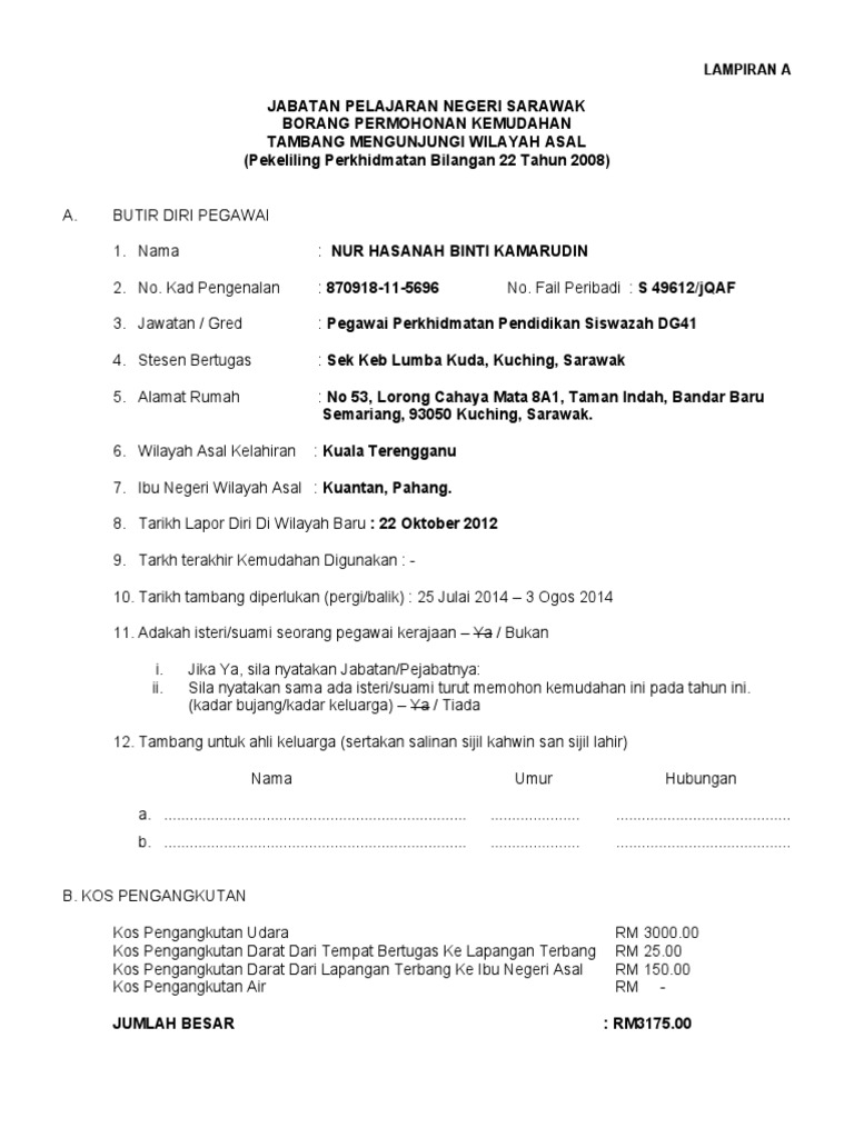 Borang Permohonan Kemudahan Tambang Mengunjungi Wilayah Asal Lampira