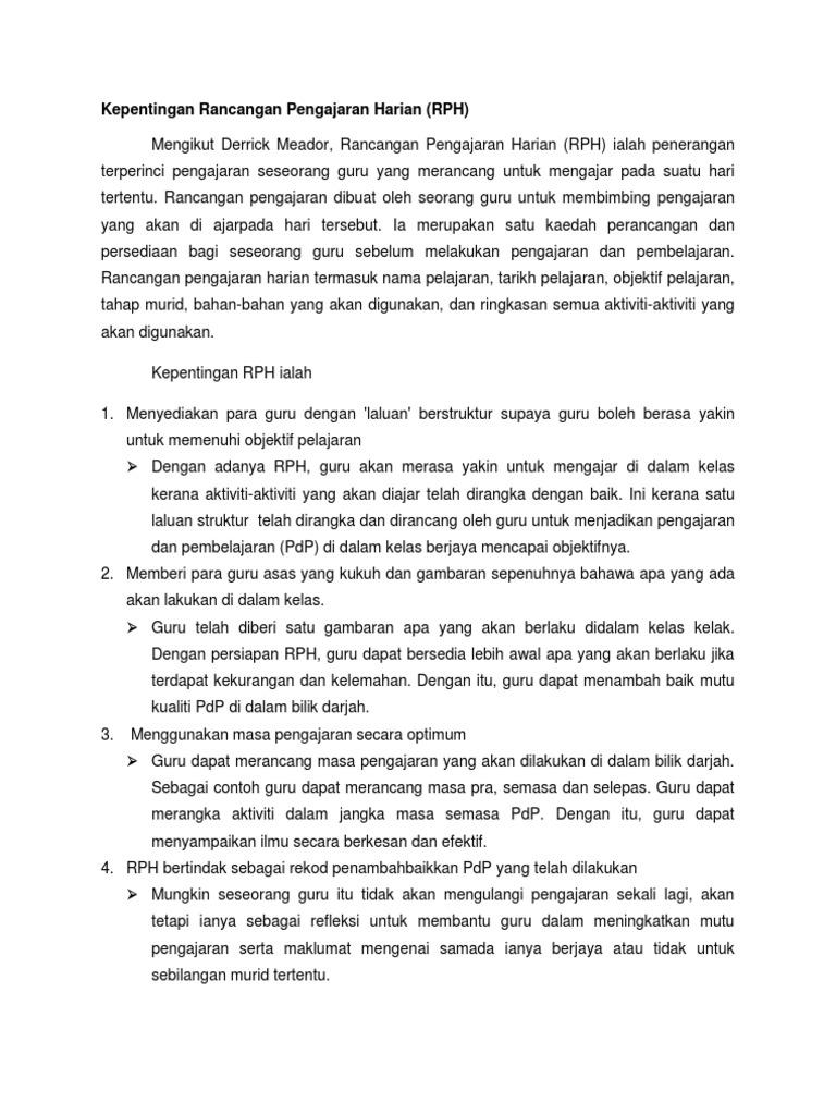 Kepentingan Rancangan Pengajaran Harian Rph