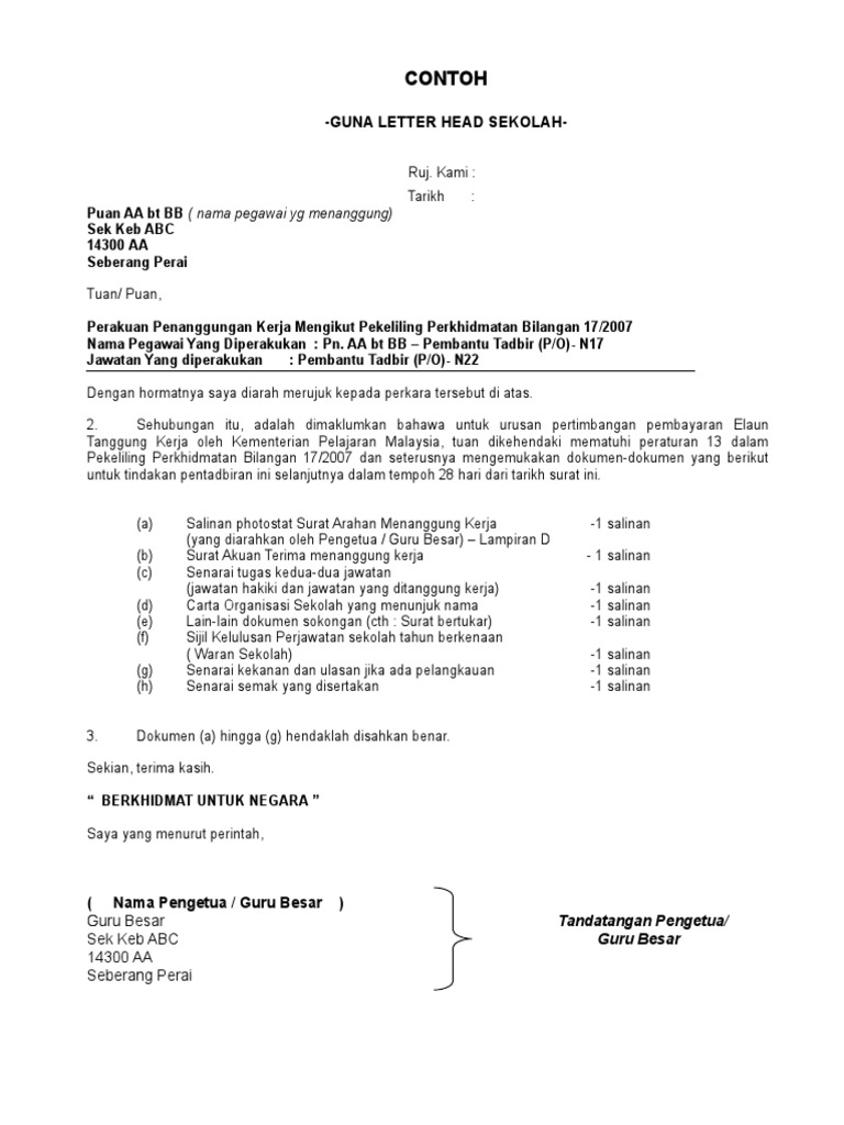 Surat Permohonan Elaun Tanggung Kerja Surat Rasmi D