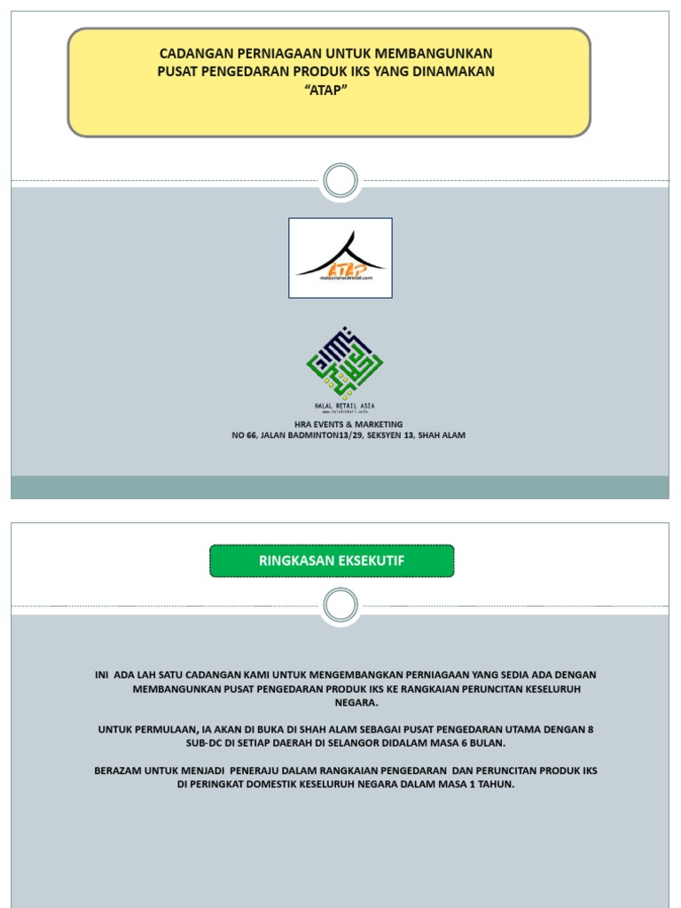 Cadangan Perniagaan Untuk Membangunkan Pusat Pengedaran Produk Iks Yang Dinamakan Atap